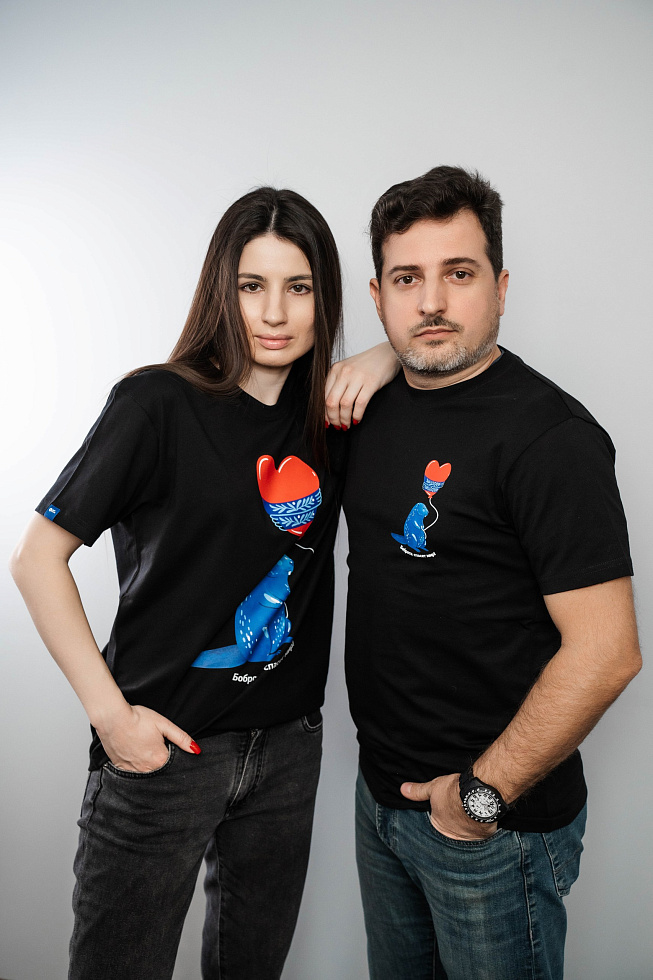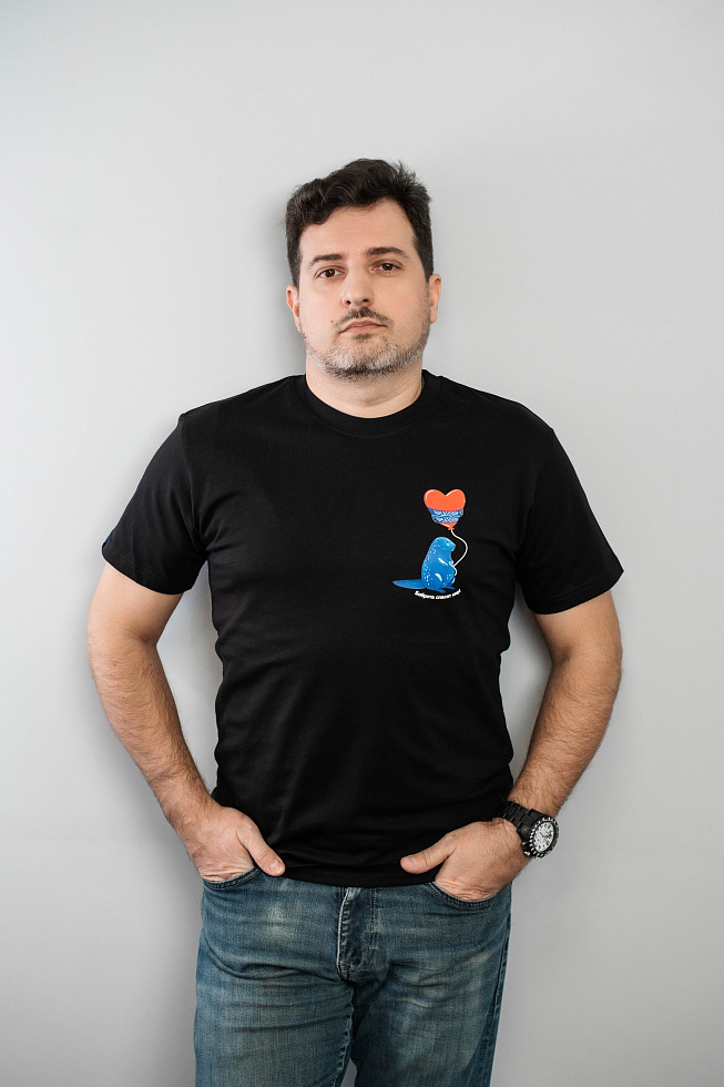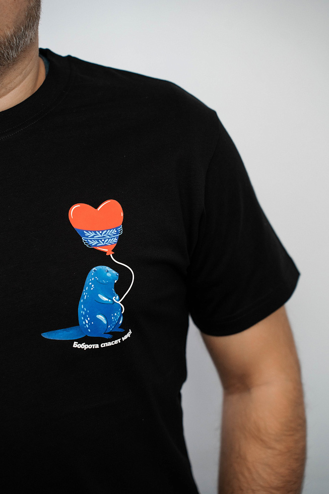 Черная футболка с большим рисунком «Бобр с сердцем»