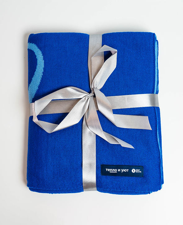 Серебристая подарочная лента делает плед ещё теплее — приятно и внешне, и внутренне.